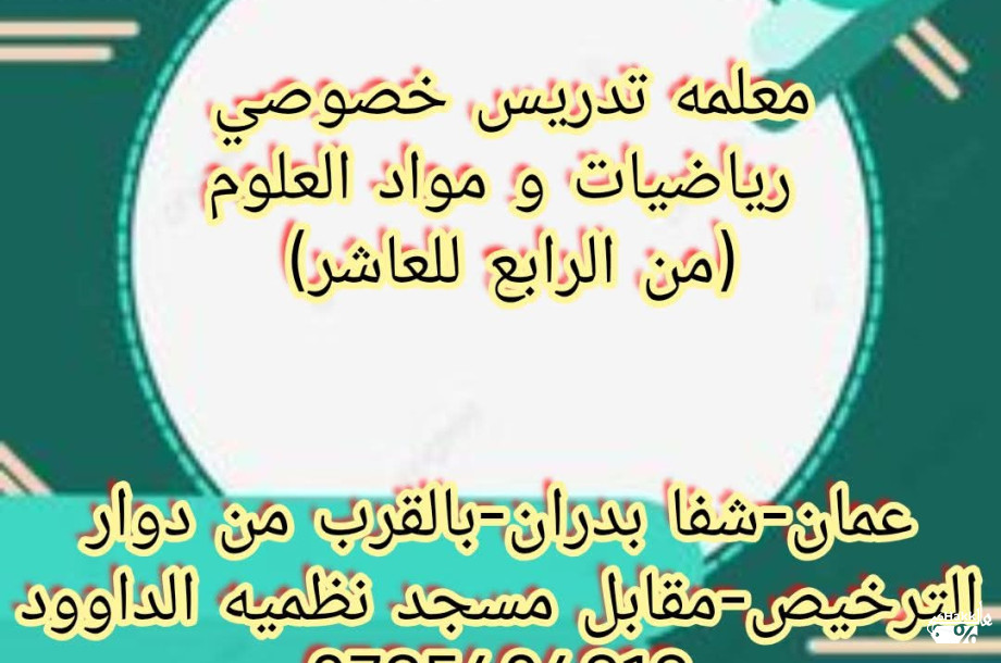 رياضيات و مواد العلوم كافه عمان-شفا بدران-بالقرب من دوار الترخيص-مقابل مسجد نظميه الداوود